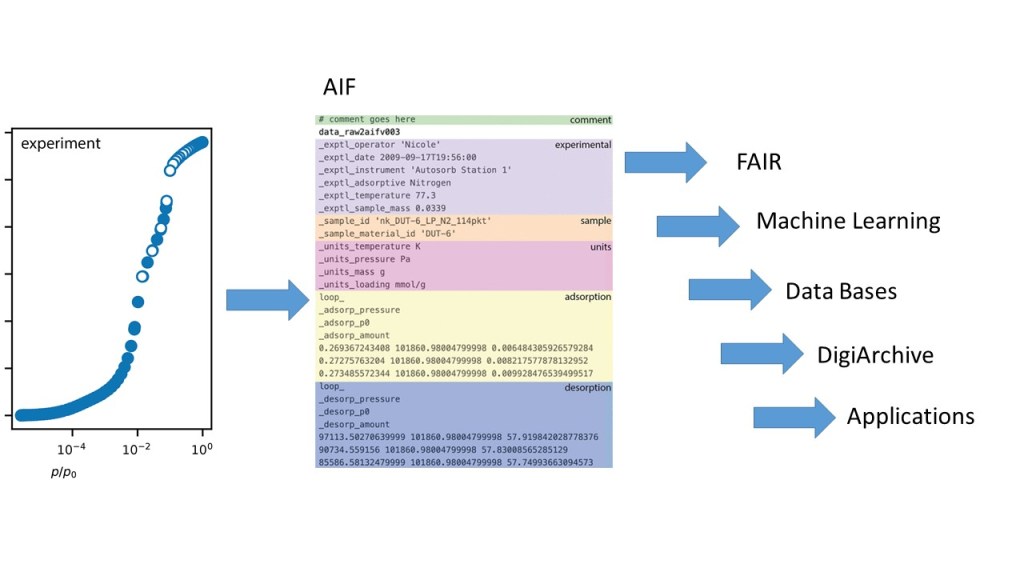 In our interactive workshop, advanced data formats and their implementation in publications and databases are illustrated. Specifically, we present a new standard format for isotherms, the Adsorption Information File (AIF), which is built on the self-defining text archive and retrieval (STAR) format that is similarly used for the ubiquitous Crystallographic Information File. The AIF is a flexible, general and easily extended free-format archive file that is readily human and machine readable – simple to edit using a basic text editor or to parse for database curation.